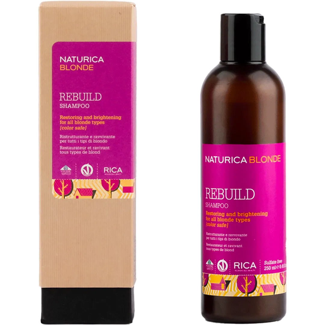 Restructuring and reviving shampoo for blonde hair, 100% vegan.